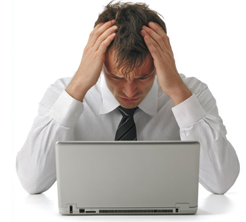 Funcionário irritado e desmotivado olhando para a tela porque “travou de novo”